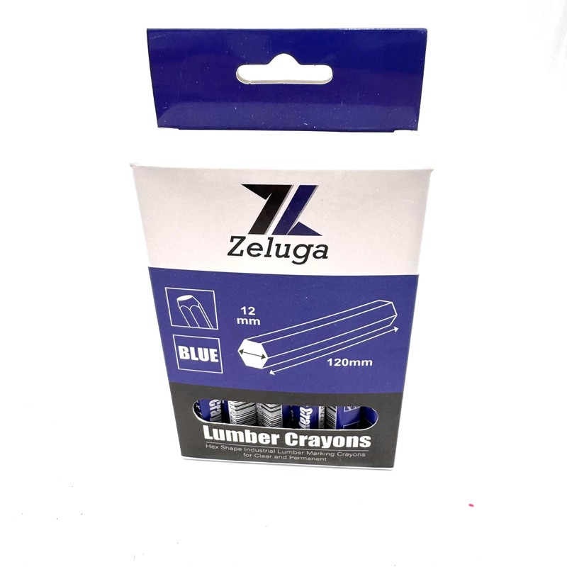 Zeluga 4.7in. x 0.47in. Hex Shape Industrial Lumber Marking Crayons for Clear and Permanent Markings, Blue 12 Pack