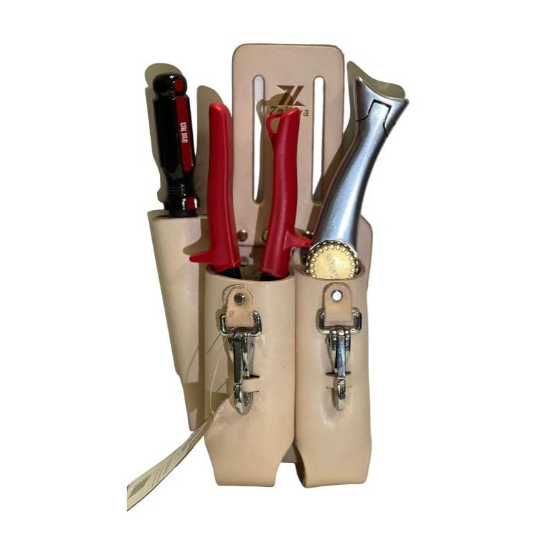 Zeluga Saddle Leather 3 Pocket Linesmen and Electricians Tool Holder (Natural)