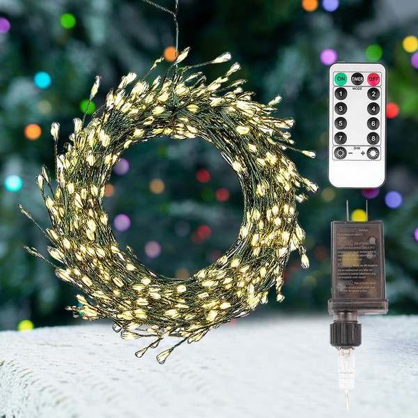 ZELUXDOT Fairy Lights Plug in,10FT 100 LEDs Waterproof String Lights,Green Wire,Firecracker Lights with Remote 8Modes for Indoor Outdoor Christmas Wedding Birthday Patio Garden Decor,Warm White