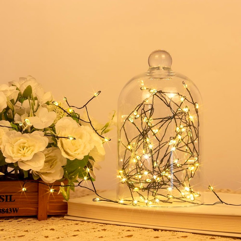 • Green Waterproof Bendable Copper Wire:10FT waterproof bendable copper wire could be shaped into any symbols,be your own designer to shape it as you like. This string lights are all the waterproof materials, inclued 3-copper wires and 100 high brightness LEDs. Between lights length : 1.4 inch.Long fairy lights wound nicely onto the paper roller, which avoid getting twisted while installation or take back after use it