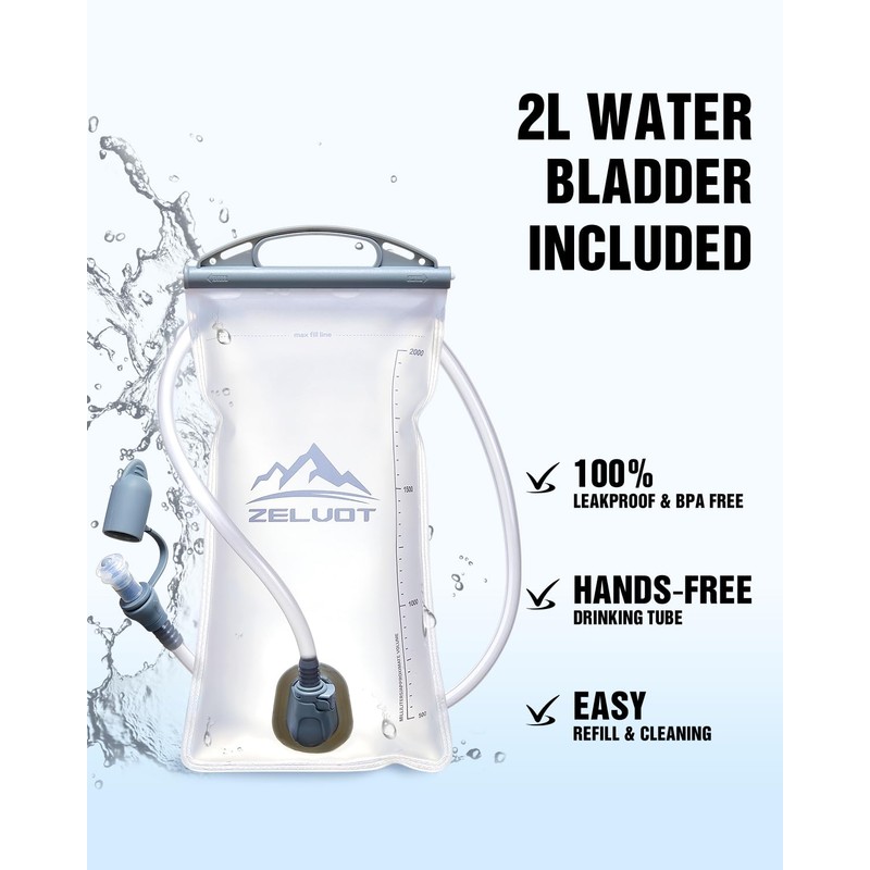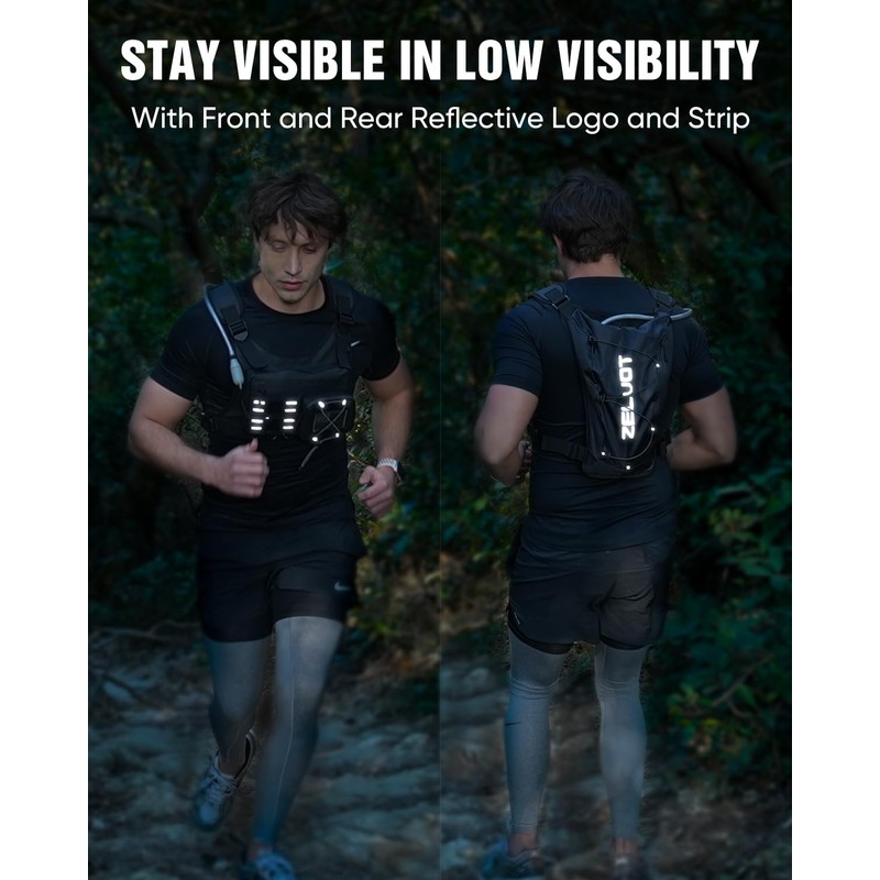 - Stay Hydrated on the Run - Zelvot running hydration vest includes a 2L water bladder made from food-grade materials, 100% BPA & PVC-free. Designed with a high-flow bite valve for hands-free drinking, it keeps you hydrated without breaking your stride. Perfect for trails, races, and long-distance runs.
