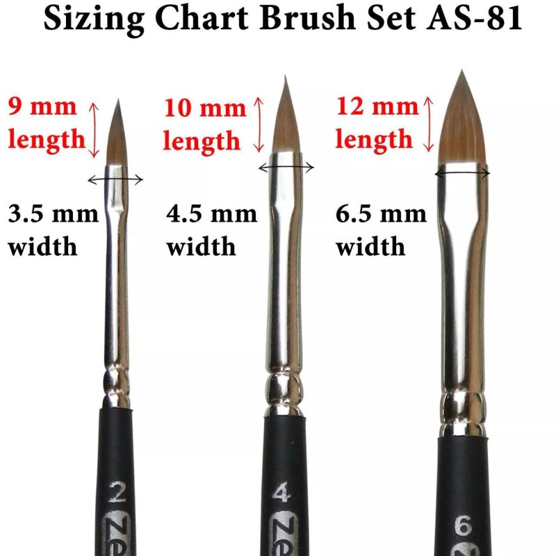 ZEM AS-81 Kolinsky Pure Sable Cat's Tongue Brush Set 3 pcs