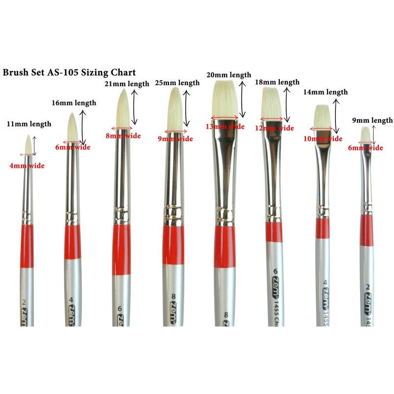 ZEM Brush Chungking White Hog Bristle Interlocked Rounds and Flats 8 Pc Brush Set + Free Canvas Carry Case