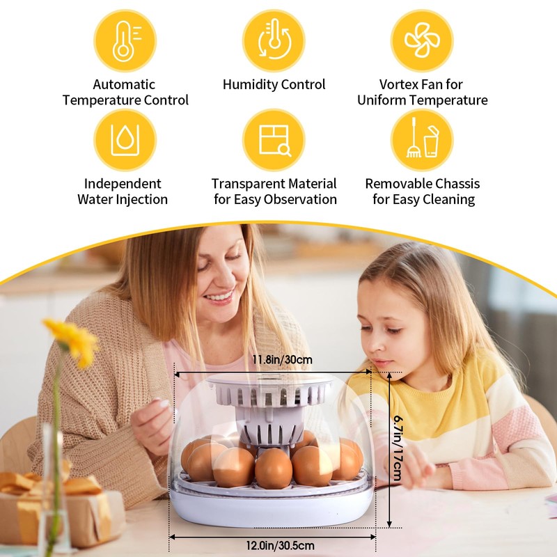 - 【Effortless Automation, Clear Observation】Our egg incubator with automatic egg turning and humidity control ensures optimal conditions for successful growth and hatching, maximizing productivity. It accommodates up to 12 chicken or duck eggs, or 24 quail eggs. Without the need to open the incubator, you can observe the captivating journey of your eggs as they progress day by day. It's both educational and fascinating for kids and inquisitive individuals!