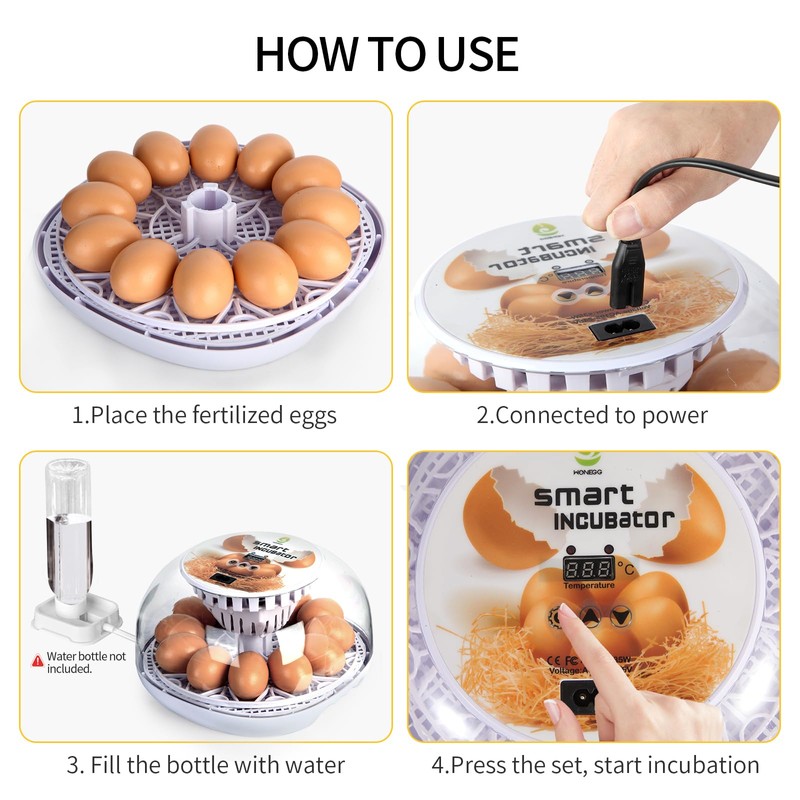 - 【Buy ZEMIRO CHARGE Incubator with Confidence】The smart incubator 12 eggs come with a 1-year limited warranty and lifetime technical support, ensuring peace of mind and a hassle-free incubation experience! The package includes an egg incubator, a water bottle, a foam box, and a user manual.
