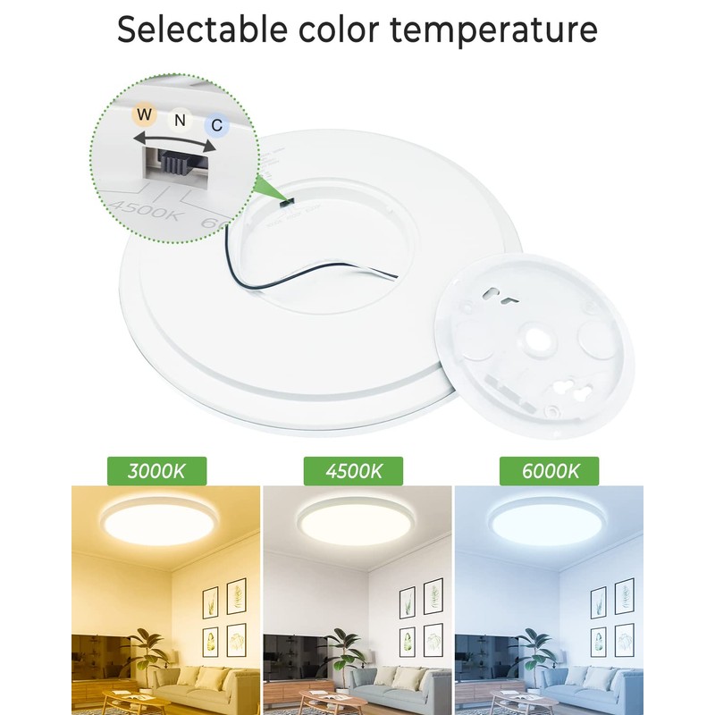 - 🌈🌈3 Color Temperatures Selectable: 3 Color Temperatures in One kitchen lights ceiling (warm white 3000K / neutral white 4500k / daylight white 6000K), just need to slide the button on the back side as shown in the advertised pictures, 3000K color temperature is suitable for warm lighting, 4500K is suitable for reading lighting, and 6000K is suitable for lighting when finely crafting.
