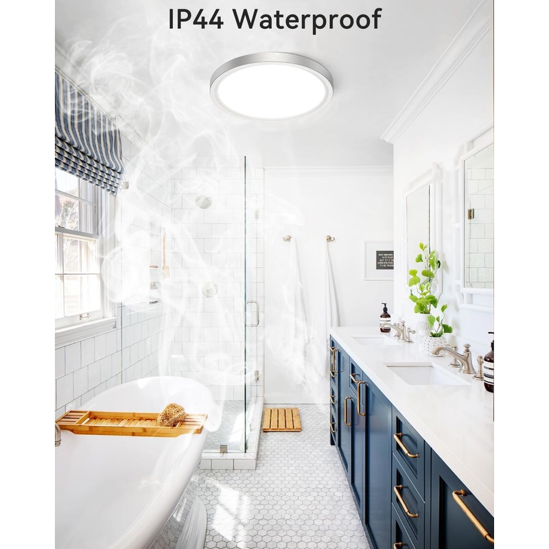 - [Eye Protection and After-Sales Service] There is no flicker, no blue light, no radiation, and no UV in satin brushed metal flush-mount lights. Your eyes are always well-lit by sources that are consistent and natural. Your home will have authentic and lively lighting thanks to the high CRI (>80). This silver-toned ceiling light fixture is safe to use, eco-friendly, and approved by ETL and CE. If you have any issues or questions about product, kindly contact us and we shall help you out.