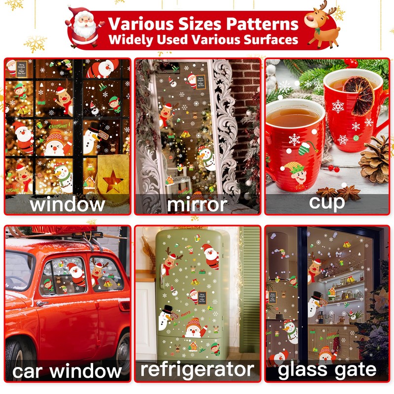 - Versatile Application: ZeMu Christmas window clings can be applied to various smooth surfaces, including glass, mirrors, windows, and even household items such as tiles and refrigerators. They are also perfect for storefront displays, coffee shops, and restaurants, adding a festive touch to any space