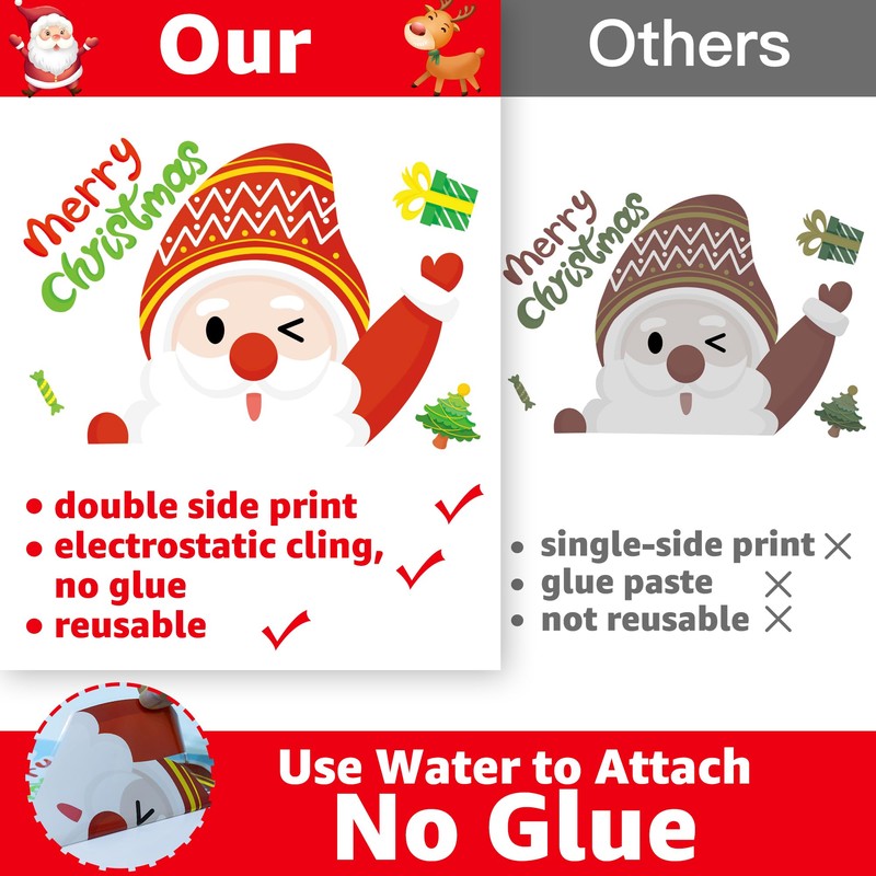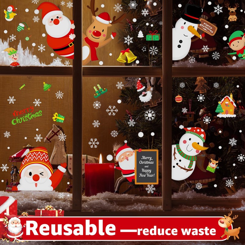 - The Perfect Christmas Gift: Not only do these xmas window stickers reusable enhance your own holiday decor, but they also make a thoughtful and festive gift for your loved ones. Share the joy of Christmas by giving them a set of these reusable and eye-catching window decorations.