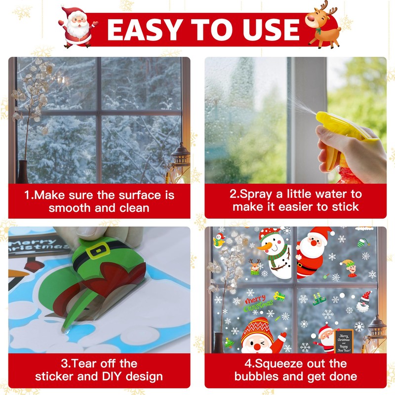- Eco-friendly and Easy to Use: Made from high-quality self-adhesive PVC with static cling, ZeMu Xmas window stickers are not only environmentally friendly but also hassle-free to apply. They leave no residue and can be easily repositioned, ensuring a stress-free decorating experience