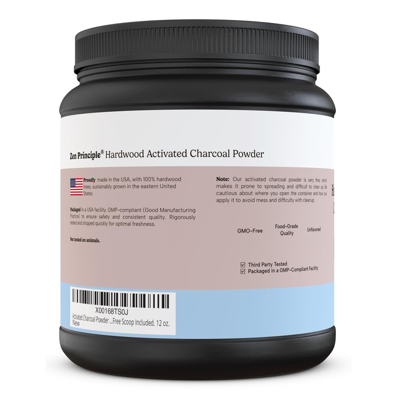 Zen Charcoal Activated Charcoal Powder only from USA Hardwood Trees. All Natural. Whitens Teeth, Rejuvenates Skin and Hair, Supports Better Digestion. Free Scoop Included. 12 oz.