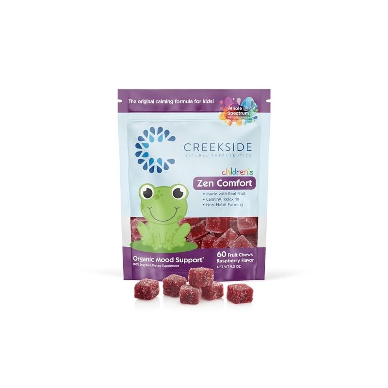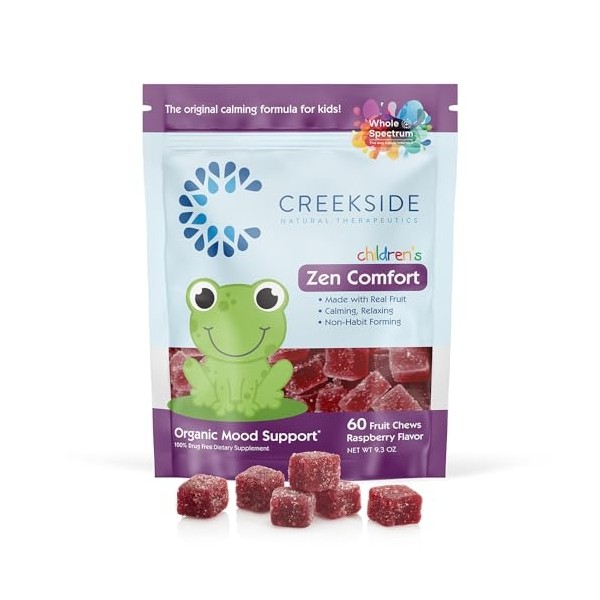 Zen Comfort for Kids, Organic Relaxation Support with 5-HTP, L-Theanine, Passionflower, Pediatrician Formulated, Vegan Gummies, Raspberry Flavor, 60 Real Fruit Chews