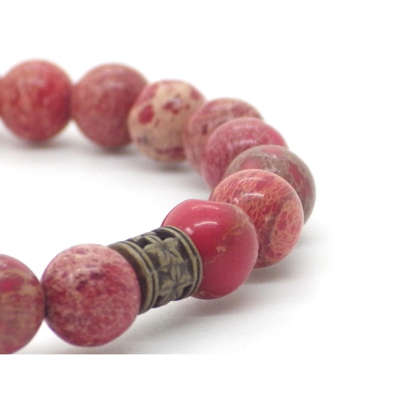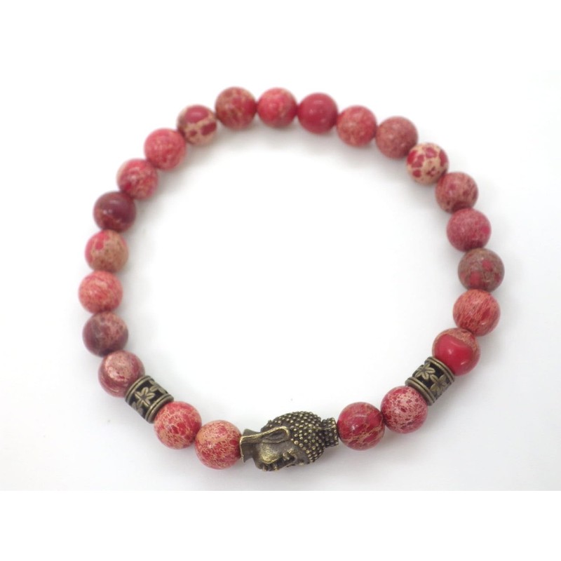 Zen-Ethno-Herrenarmband aus roten kaiserlichen Jaspisperlen und bronzefarbenem Buddha