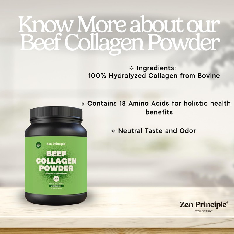 Zen Principle Grass-Fed Agglomerated Hydrolyzed Collagen Peptides 1.5 lb. Anti-Aging Protein Powder for Healthy Hair, Skin, Joints. Paleo Friendly, GMO and Gluten Free, Pasture-Raised Bovine.