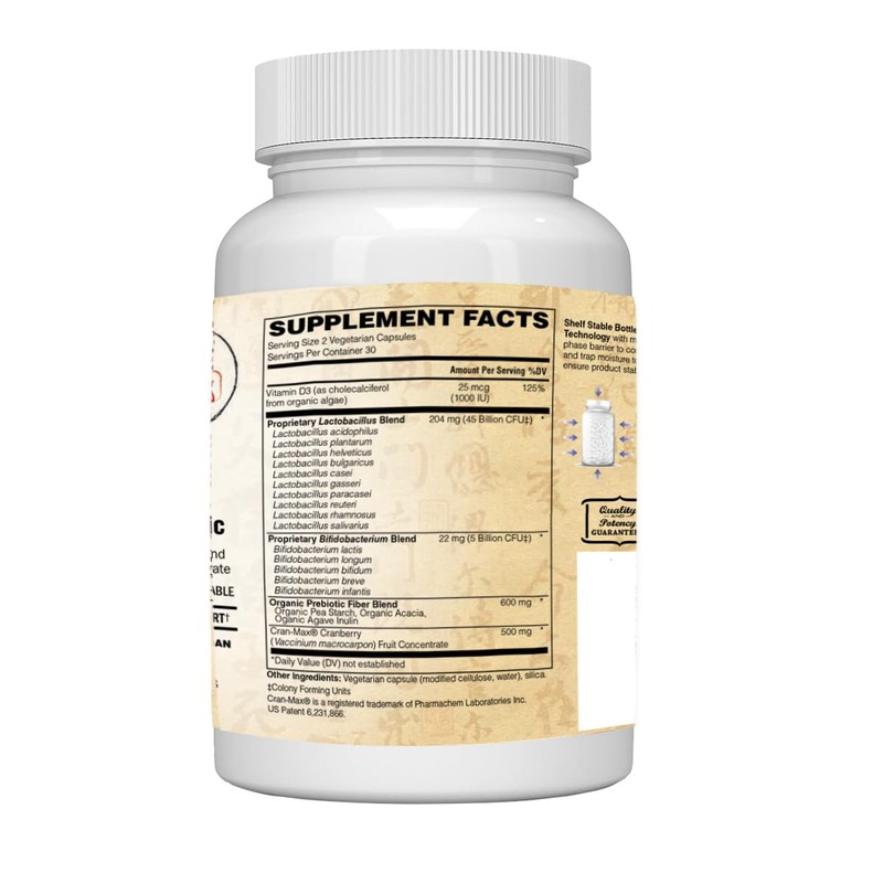 • Probiotic Supplement: Provides 50 billion probiotic cultures to promote a healthy gut and urinary tract environment,. providing a Lactobacillus blend of 45 billion cells with Bifidobacterium blend of 5 billion cells.