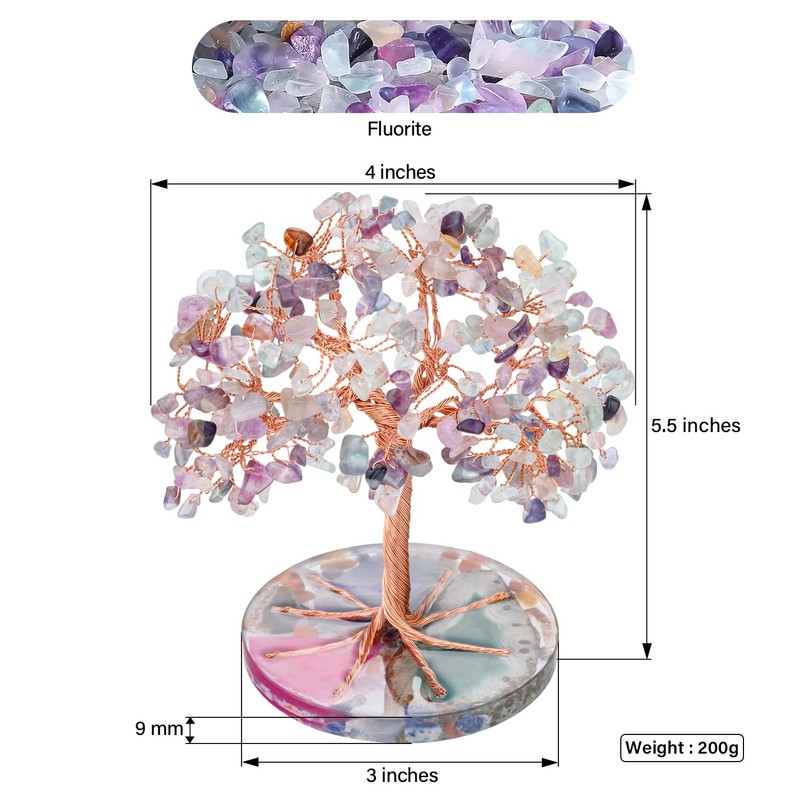 - 🌳Leaves Material: Fluorite Leaves mean peace, bliss, and calming. The fluorite crystal healing properties fill your spirit with positive and high vibrational energy, which can encourage you to let go of anxiety and chase dreams.