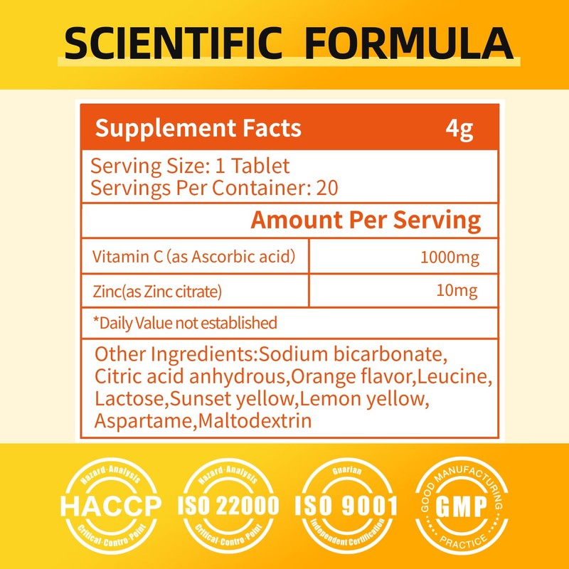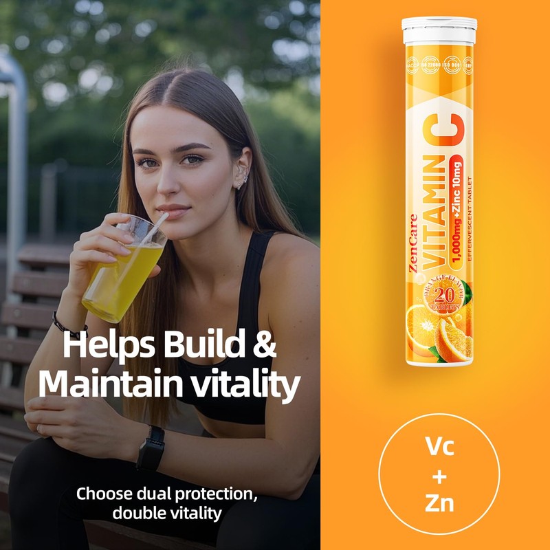 ZENCARE Vitamin C 1000mg + Zinc Effervescent Tablets - Powerful Immune Support Supplement with VC and Zinc for Adults - Sugar-Free & Easy to Dissolve Vitamin C Powder Tablets