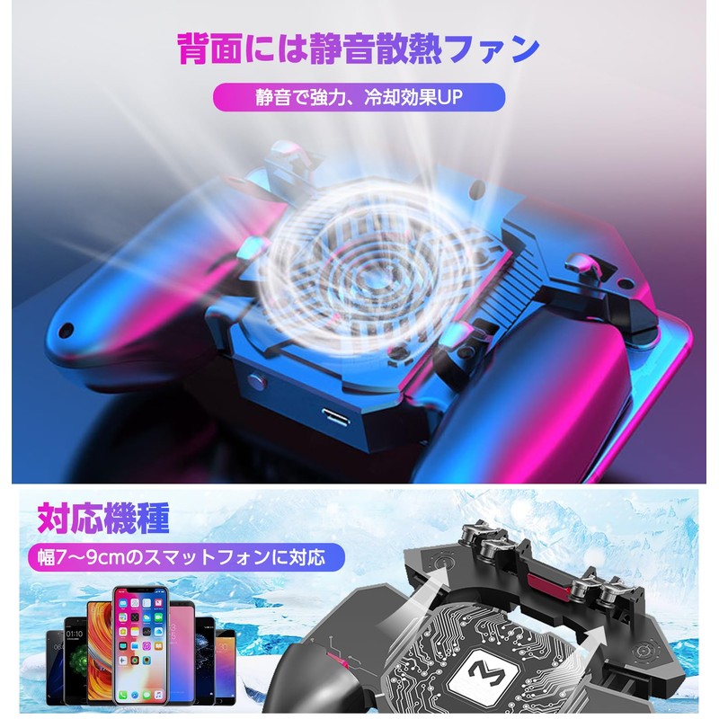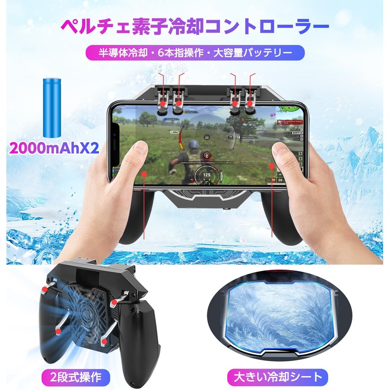 - Cordless USB Rechargeable Smartphone Controller: Introducing a six finger operation smartphone game controller with a semiconductor cooling device. Built-in 2,000 mAh x 2 high capacity battery, can be used continuously for about 3 hours on a single full charge. You can enjoy the popular smartphone game "PUBG Mobile", "Knives Out", "Fortnight", etc