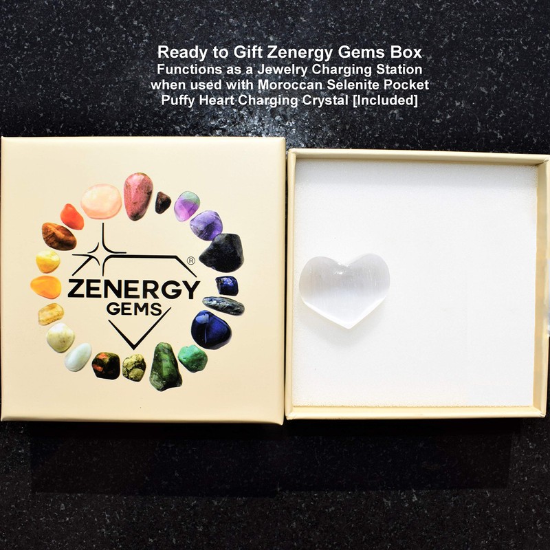 Zenergy Gems Selenite Charged Hand-Carved Natural 1.5" Golden Yellow Tiger Eye (Himalayan) Pocket Puffy Heart/Palm Heart/Worry Stone + Selenite Puffy Heart Charger [Included]