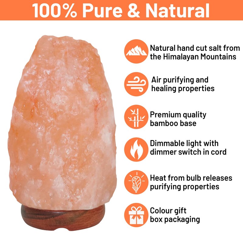ZenGlo Himalayan Salt Lamp 6~8 Inch Tall with Dimmer Control Switch, Elegant Wood Base for Home Décor Holiday Gifts