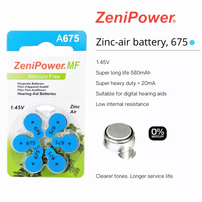- Battery Size: Size 675