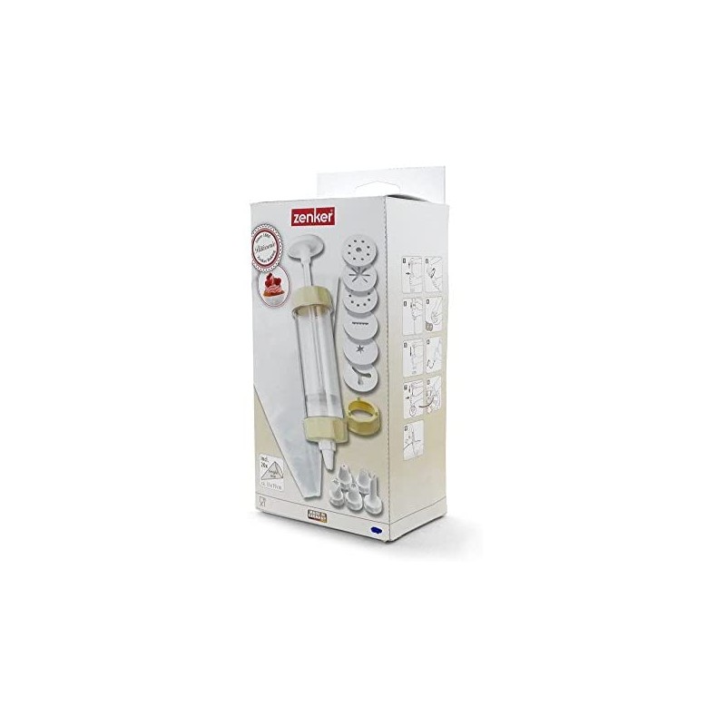 Zenker 15285 Pastry and Decorating Set, Piping Bag, Nozzles, Pastry Press, Plastic, Cream/White