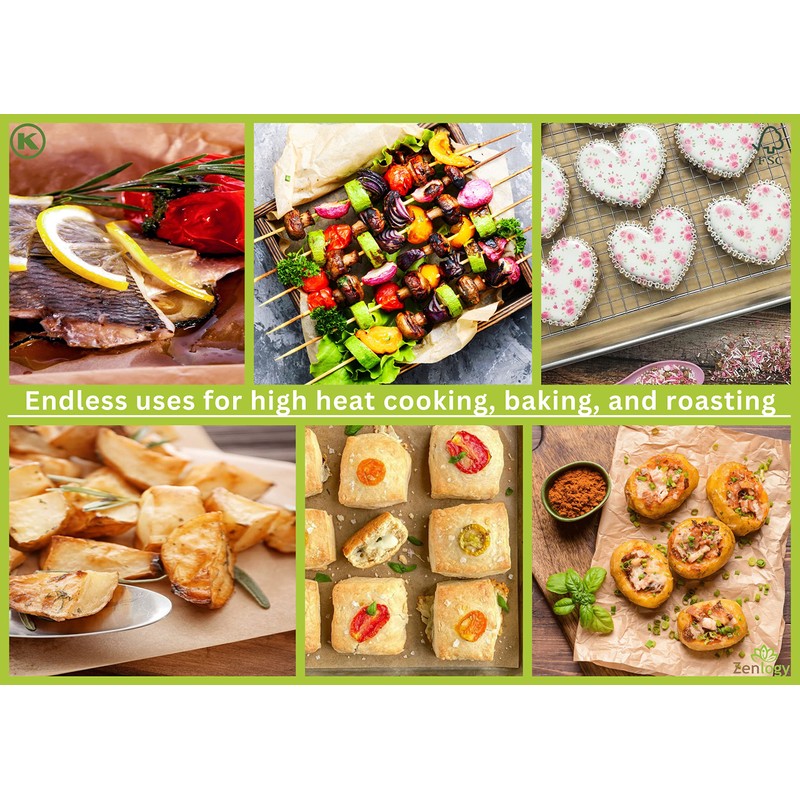 • Zenlogy parchment paper is Kosher certified, non-stick and can sustain high heat upto 450 degree fahrenheit so it's great for both commercial and home use Our paper is thicker than our competitors