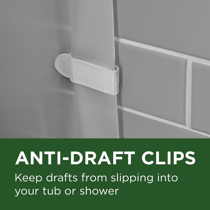 - INCLUDES ANTI-DRAFT CLIPS TO STOP DRAFTS FROM GETTING IN: With 2 anti-draft clips that attach to your shower curtain and prevent drafts