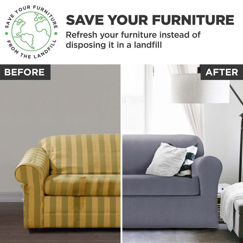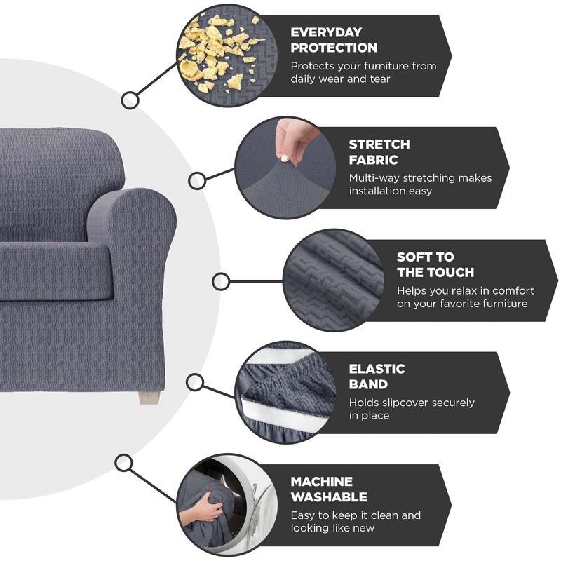 • This value slipcover has modern textured knit construction with premium touches that make it an easy choice to cover your existing furniture instead of replacing it