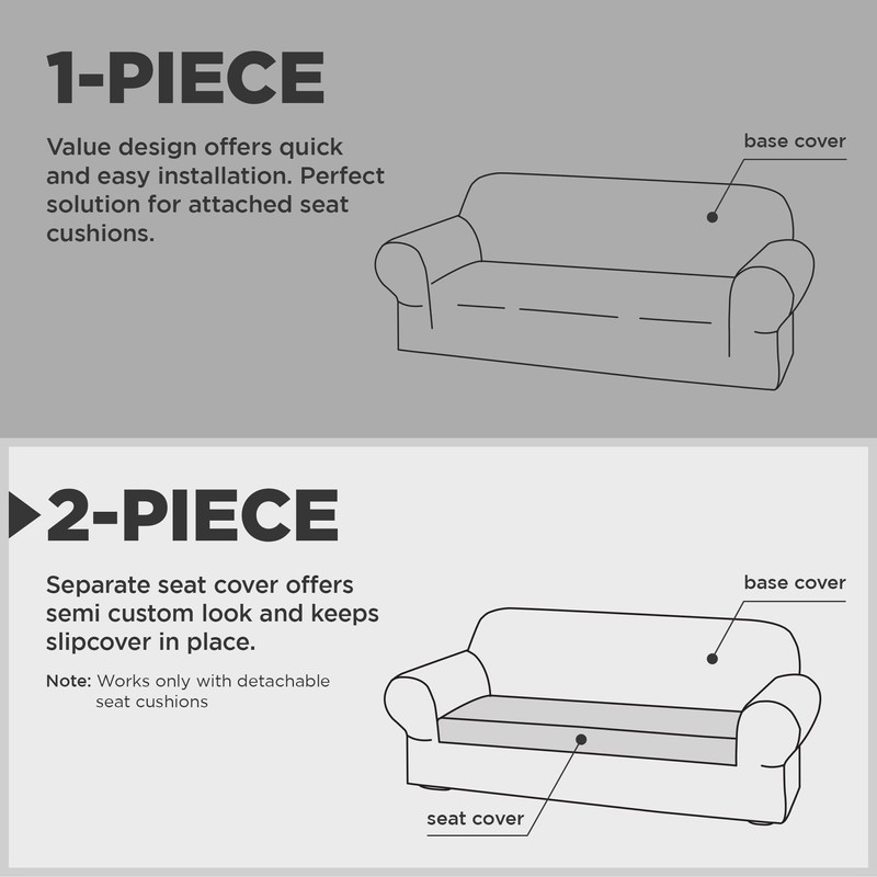 • Easy-to-install 2-piece construction with multi-way stretching has a separate seat cover and a slipcover; there are fewer seams and no troublesome zippers to worry about during installation