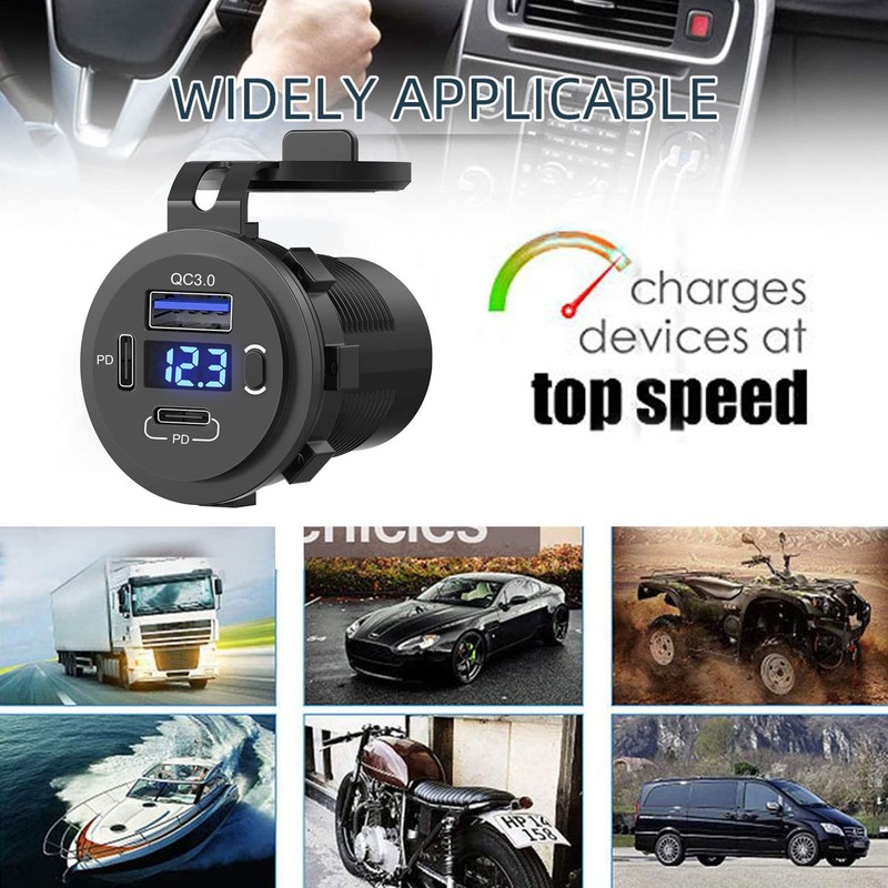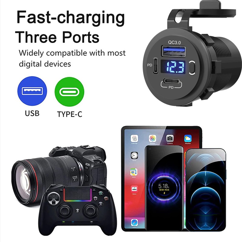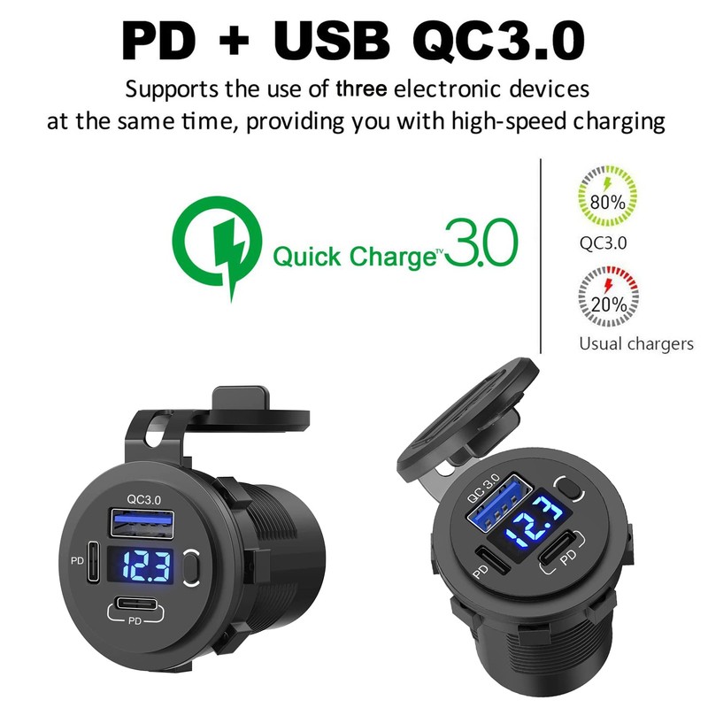 - 【58W 12V USB OUTLET】This12v USB socket is longer than other sockets, which has more space to load more smart chip, and realizes the function of Two 20W PD USB C port + One18W QC3.0 port, Three ports can independent fast charging simultaneously without affecting each other.