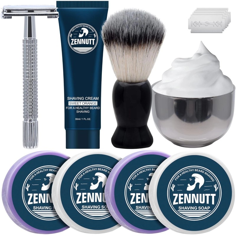 ZENNUTT Shaving Soap W/Shaving Bowl,Shaving Brush,Shaving Cream 4 Packs