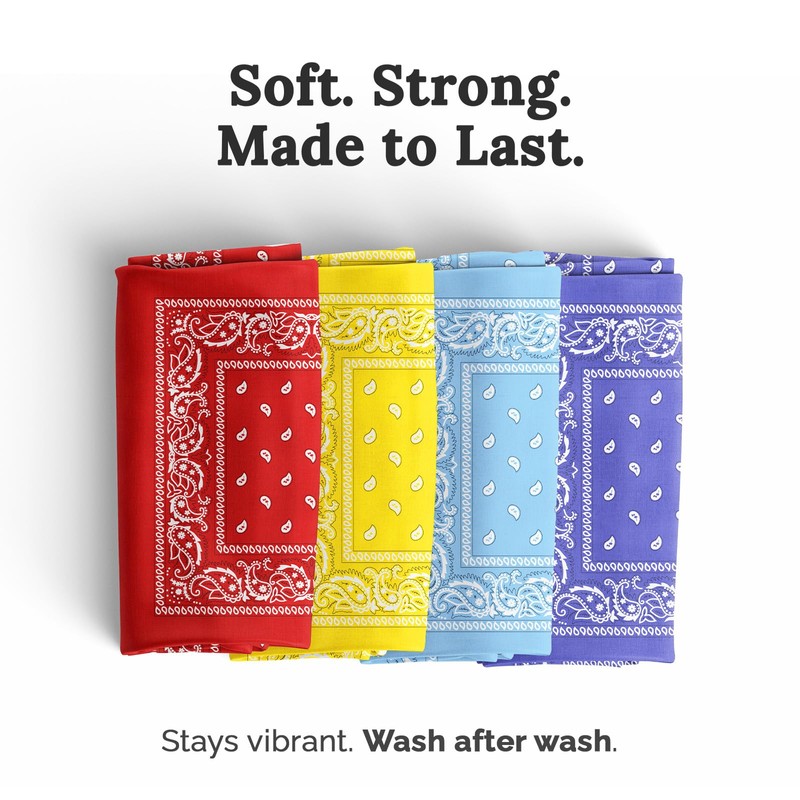 - 🎨 VIBRANT COLORS & PREMIUM QUALITY – Crafted from thicker cotton for better opacity and a perfect fit. Wash after wash, these bandanas retain its bright color without fading or shrinking.