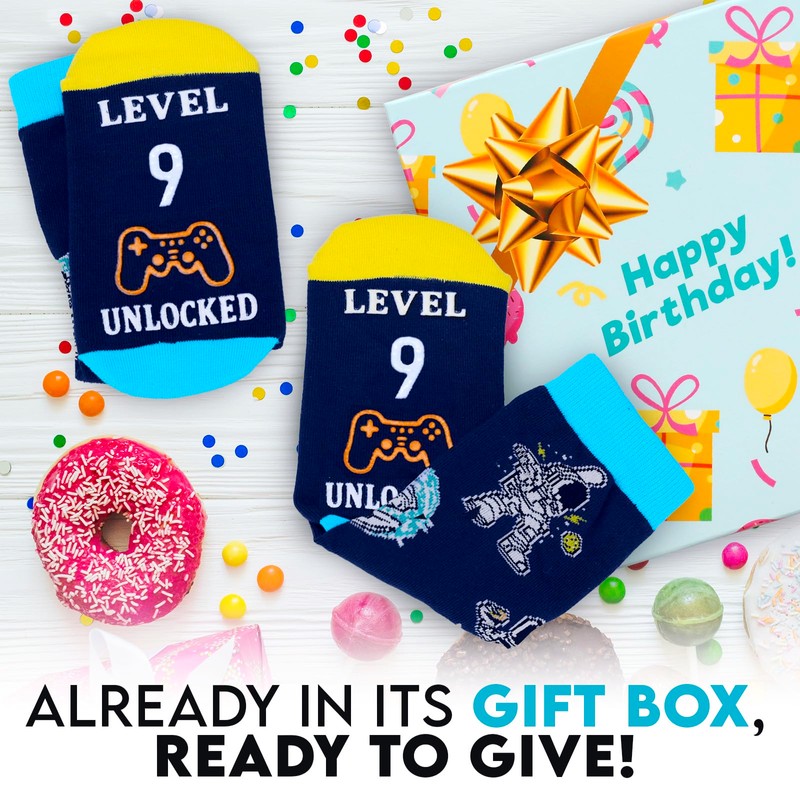 - AWESOME GIFT FOR 9-YEAR-OLD BOYS – Looking for cool birthday gifts for 9-year-old boys? These fun socks are a hit with gamers and boys who love adventure!