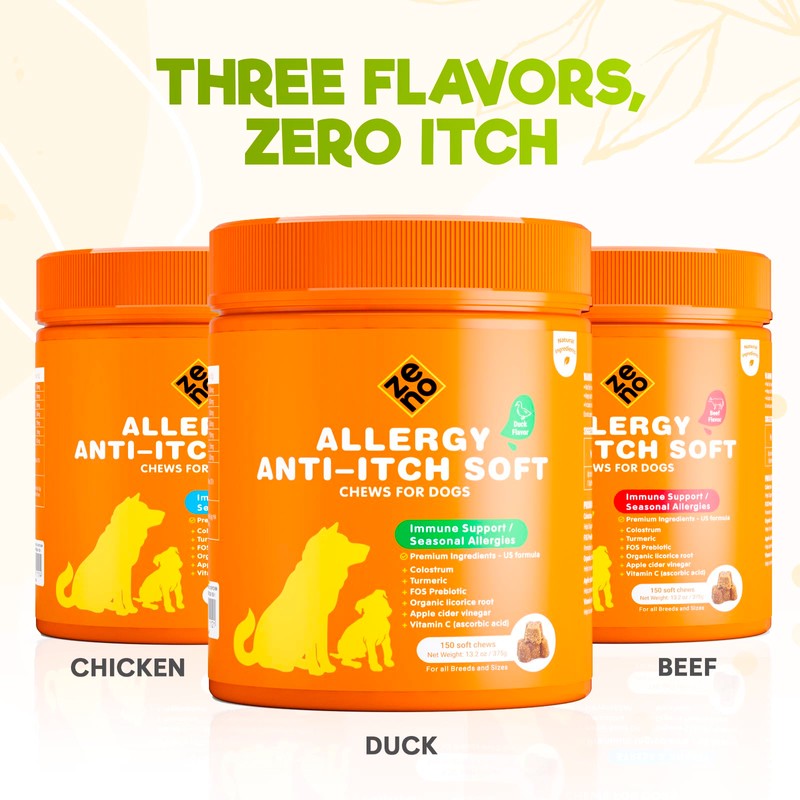 ZENO Dog Allergy Chews 150Pcs - Supplements for Itchy Skin and Paw Licking - Allergy Relief - US Formula with Dog Probiotics, Natural Ingredients & Vitamins - Duck