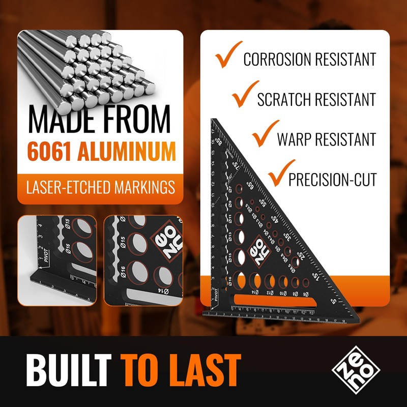 - 💪 DURABLE & RELIABLE CONSTRUCTION: Crafted from premium materials, our carpenter square is built to withstand the rigors of any job site or workshop. The clear, laser-etched markings on the square resist wear and ensure long-lasting accuracy.