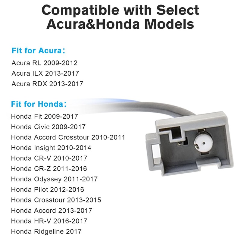 • Attentions: This vehicle radio antenna adapter is specifically designed for Honda and Acura aftermarket car stereo. Provided wire harness compatibility list is only for your reference, Picture 2. Please know whether the factory radio antenna socket is same with this listed stereo antenna connector