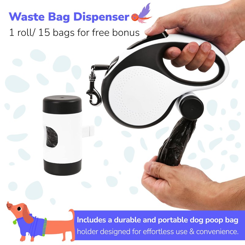 - LONG & EXTENDABLE The long retractable dog leash can be easily pulled out, allowing your dog to roam freely while keeping complete control. DOG LEASH - The retractable dog leash provides your pet with sufficient freedom of movement while maintaining control during walks or training.