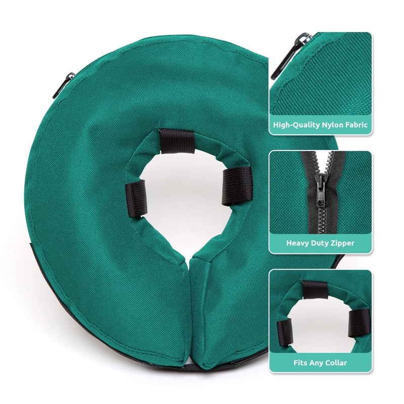 ZenPet Protective Inflatable Recovery Collar for Dogs and Cats (Teal) - Soft Pet Cone Does Not Block Vision E-Collar - Designed to Prevent Pets from Touching Stitches, Wounds and Rashes (X-Small)