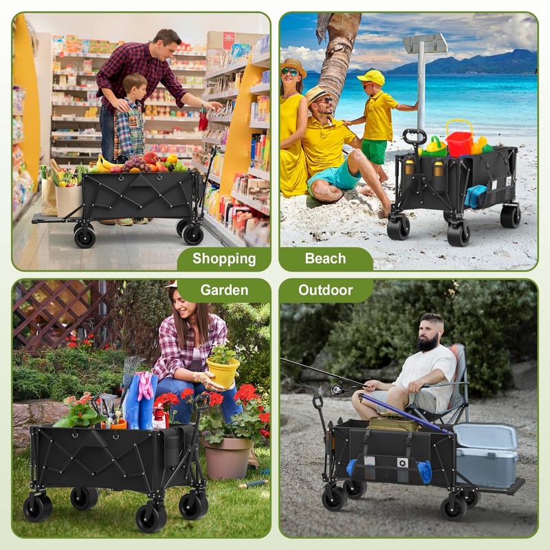 - 【Rock-Solid Durability】Collapsible wagon built with a heavy-duty carbon steel frame and tear-resistant 600D Oxford fabric, this grocery cart holds up to 360 lbs with ease. Whether hauling groceries, gear, or garden supplies, this wagon cart designed to handle tough jobs without a hitch.