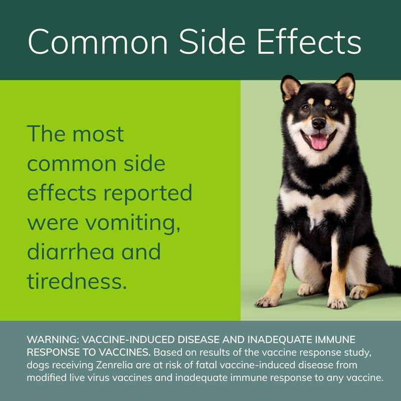 - The most common side effects reported with this dog dermatitis treatment were vomiting, diarrhea and tiredness; please see product insert for more information