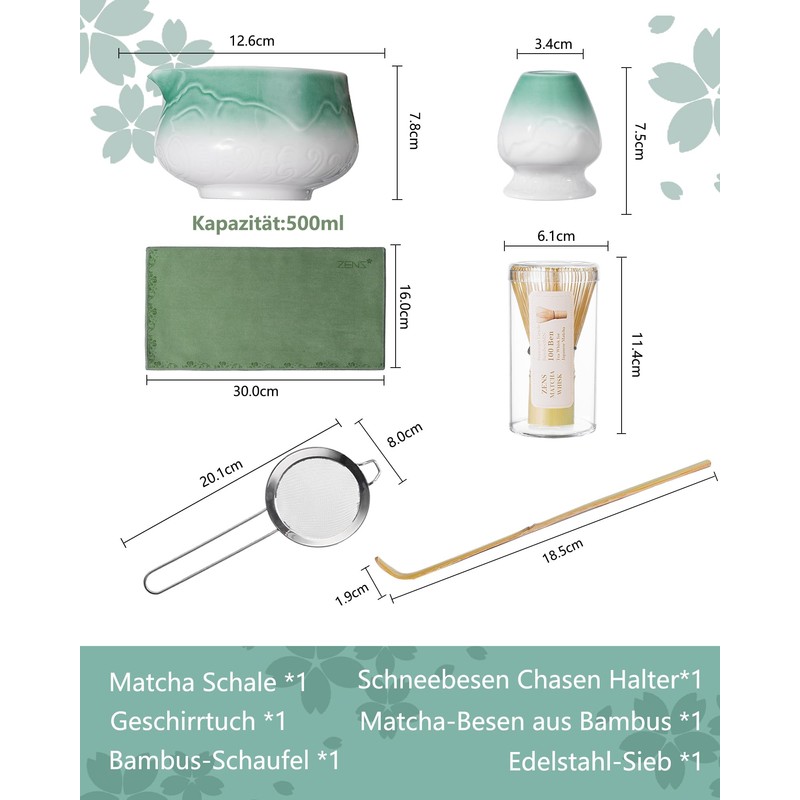 - 6pcs Complete Matcha Kit – This set includes 5 essential matcha accessories:: 1 Bamboo Matcha Whisk (Chasen), 1 450ml/16oz Matcha Bowl, 1 Whisk Holder, 1 Bamboo Scoop, 1 Absorbent Tea Towel, and 1 Stainless steel sifter-Each tool is crafted with precision, everything you needs for an effortless and an authentic matcha-making experience. (Matcha powder not included.)