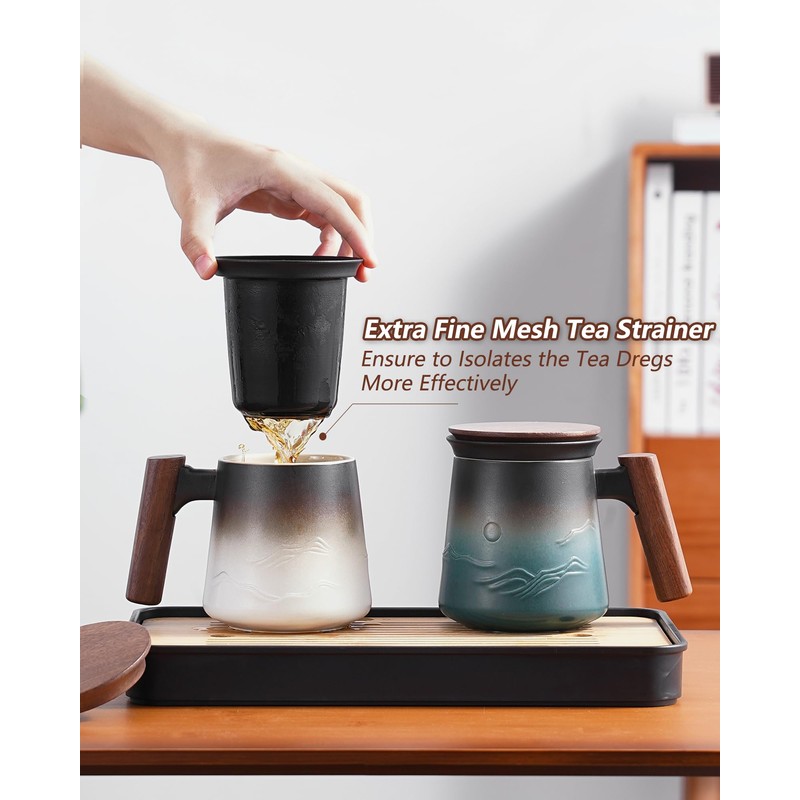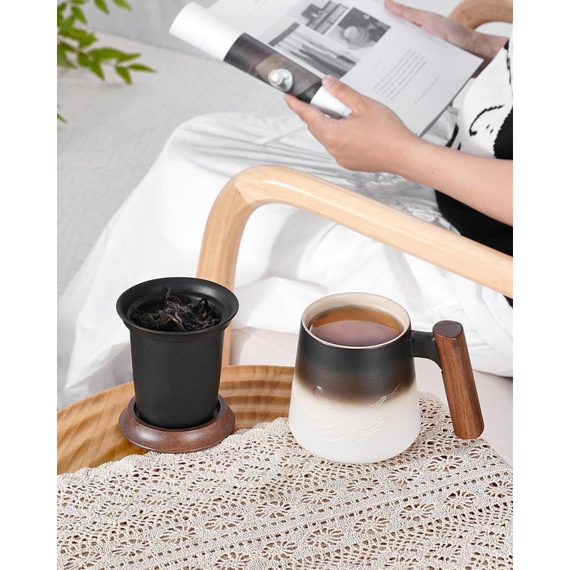 - HIGH QUALITY STURDY CERAMIC: Made of pro-grade heavy ceramic clay, fired at high temperatures to ensuring long-lasting durability. It is lead free which means you can enjoy your tea on a daily basis without worrying about harmful substances leaching into it. the stylish tea cup can also be used for coffee or other beverages. (The tea strainer is dishwasher safe, but recommend to hand wash the mug to protect the wood color.)