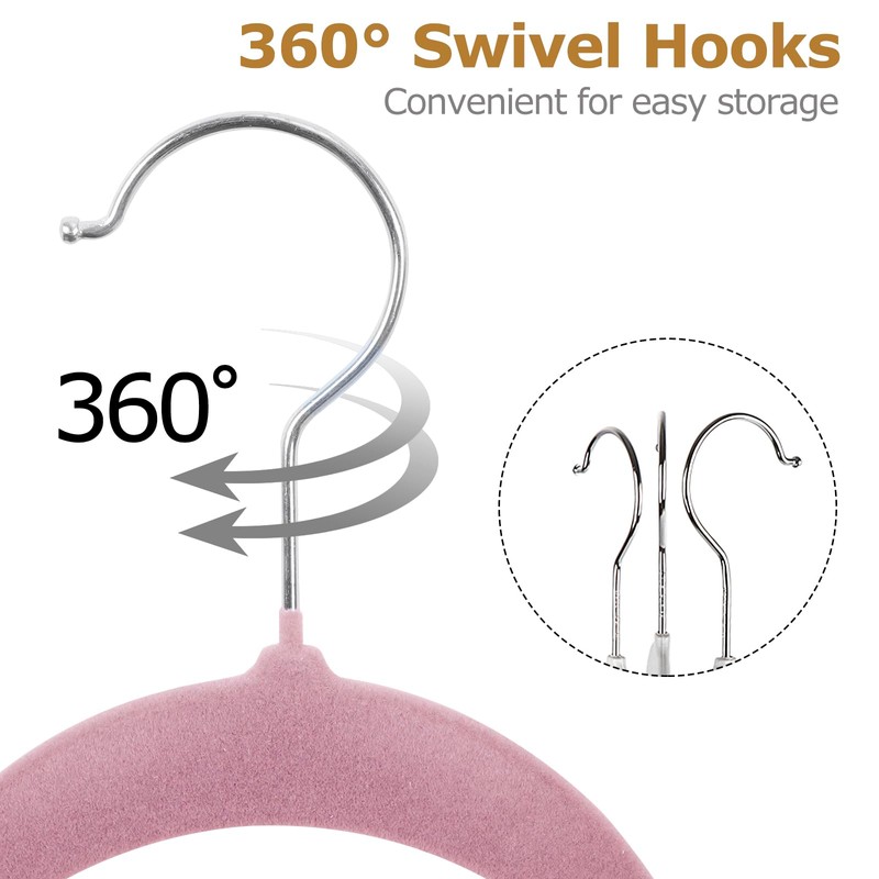 - High Quality: Made of premium quality flexible plastic, sturdy chrome hooks and velvet flocked, build to last; High quality flocked velvet will not shed or stain your clothes; Anti-rust shiny chrome 360-degree swivel hook allows you to adjust and align your clothes easily