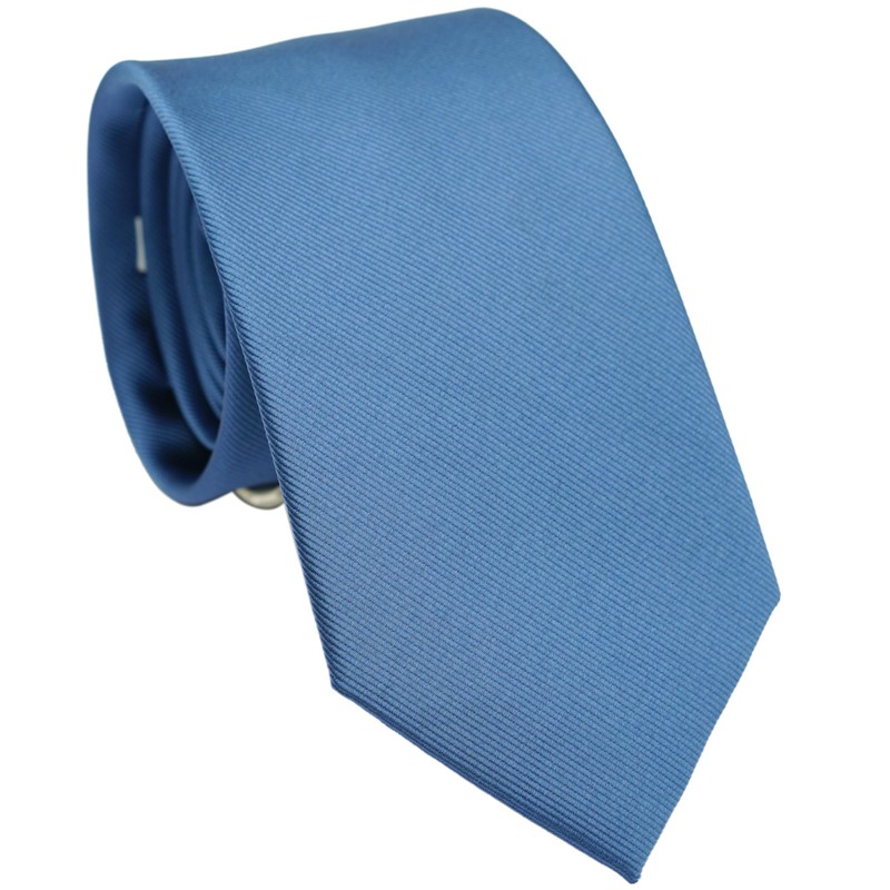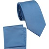 ZENXUS Regular Tie and Pocket Square Set, Solid Steel Blue Necktie for Men