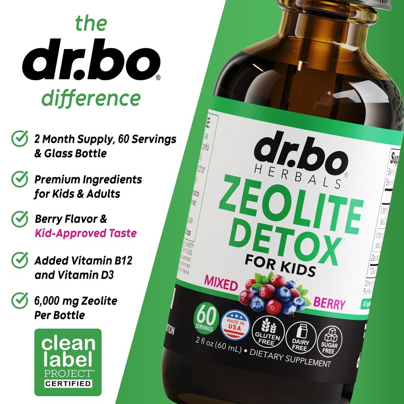 Gentle: 2 month supply daily support great for kids & adults; extra strength Dr. Bo Zeolite Detox for kids liquid drops has a great berry taste for children to enjoy clinoptilolite zeolite drops