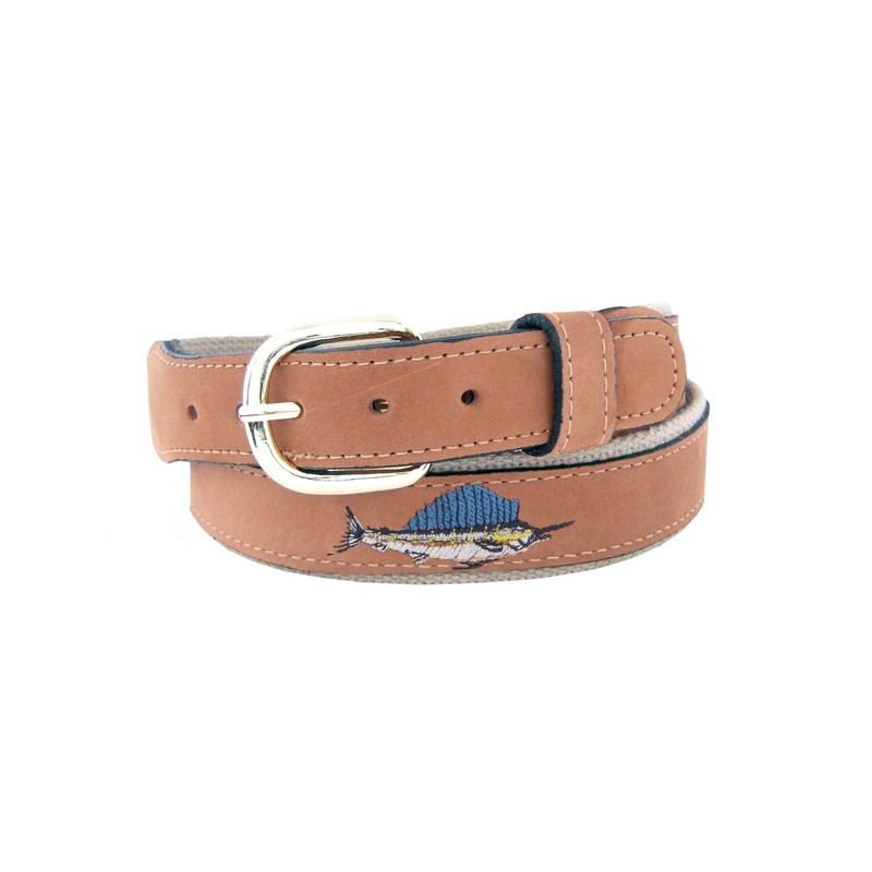ZEP-PRO Men's Tan Leather Embroidered Sailfish Belt, 42-Inch, Tan/Buff