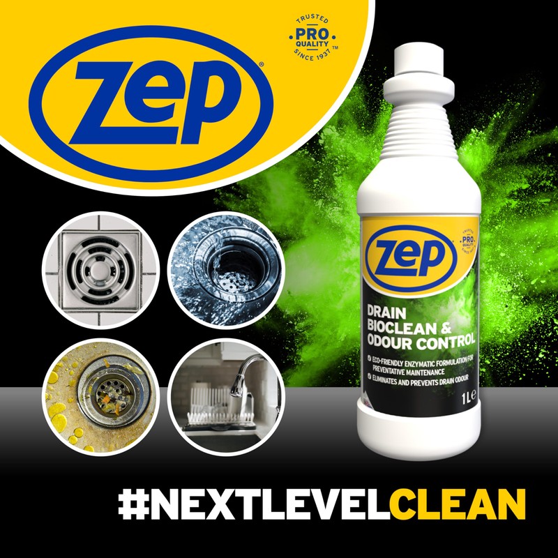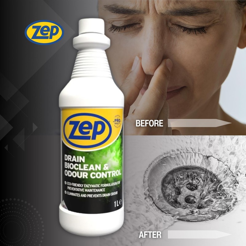 Zep Zep Drain Bioclean & Odour Control - 1l, Drain Unblocker For Preventive Maintenance to keep a drain unblocked, Perfect Drain Cleaner For Bad Smells, Sink Cleaner For Smelling Sinks, Zep Commercial