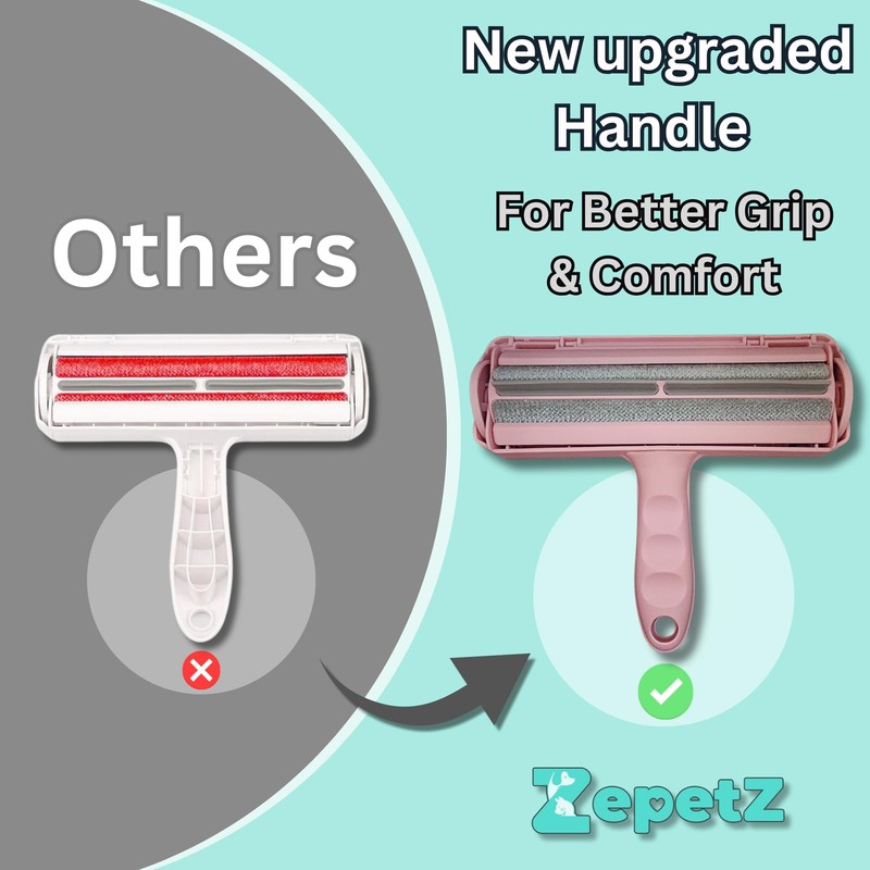 ZepetZ Pet Hair Remover, New Ergonomic Handle for Superior Grip β Ideal for Cleaning Furniture, Carpets, Car Seats, and Bedding β Reusable Lint Roller for Versatile Multi-Surface Fur Removal. (Pink)
