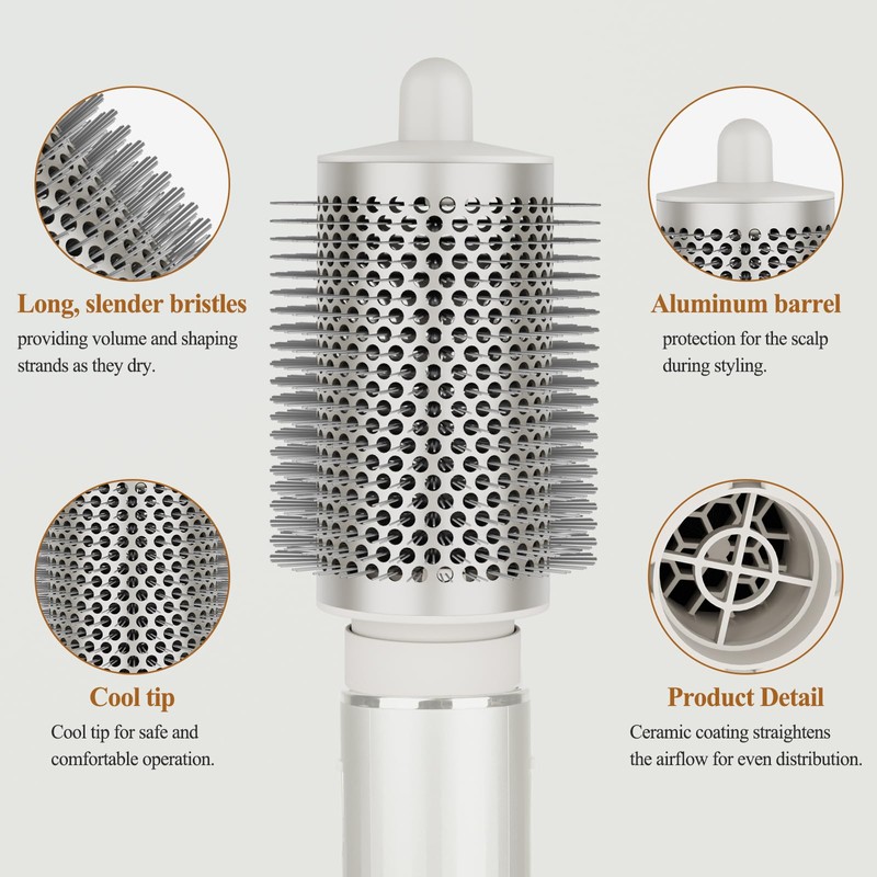 Elevate your hair styling routine with the Zephblow Large Round Volumizing Brush, a must-have tool compatible with shark flexstyle HD400 Series,for HD430/HD435/HD440 . Engineered for longer hair types, this round brush attachment is designed to lift hair from the roots, creating exceptional volume and body. The anti-static bristles minimize hair damage and tangling, ensuring a smooth and comfortable styling experience. With its 360-degree ventilation and honeycomb design, the brush ensures even heat distribution, protecting your hair from excessive heat damage while delivering consistent styling results. Constructed from durable, high-quality materials, this brush is built to last, providing professional-level styling for both everyday users and professionals. Whether you're looking to add volume, shape, or smooth your hair, the Zephblow Large Round Volumizing Brush is the perfect tool to achieve your desired look.
